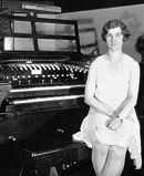 Right: It's been more than 50 years since WSUI had a staff organist on hand to provide musical interludes between programs. The organist is Elaine Blair.